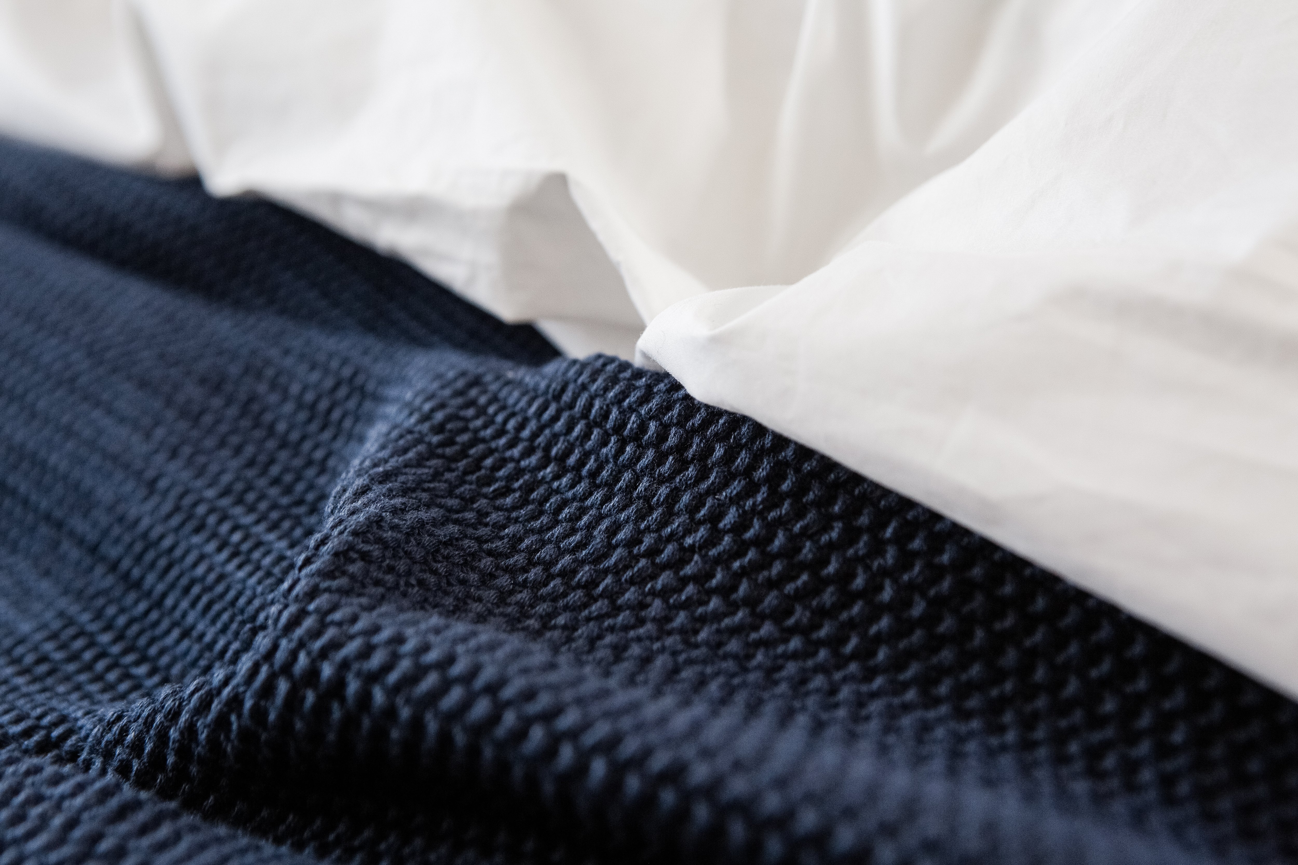 A soft and gentle plain chunky knit throw blanket that will cover the entire surface of any bed or easily "hug" your whole family at once.