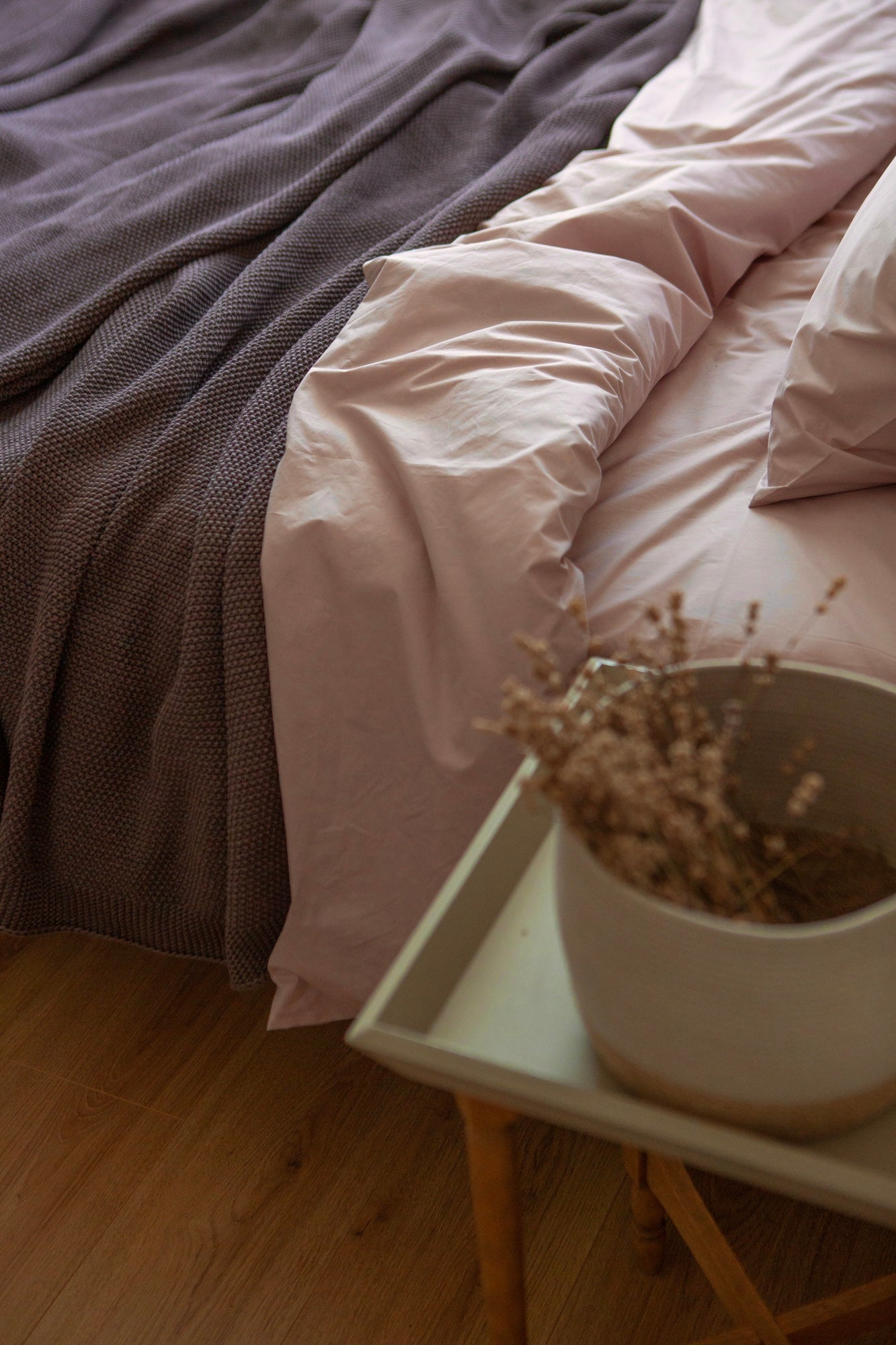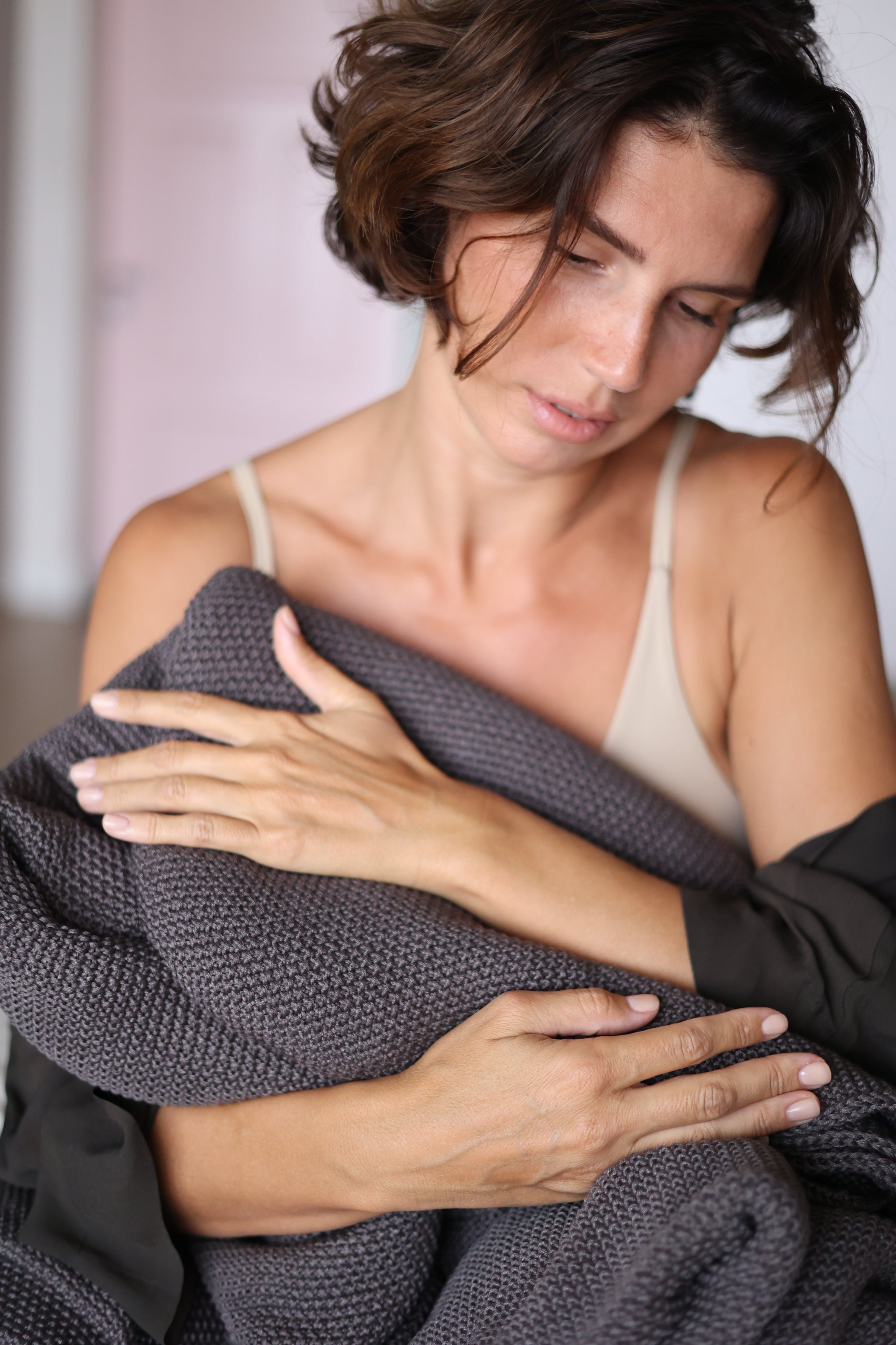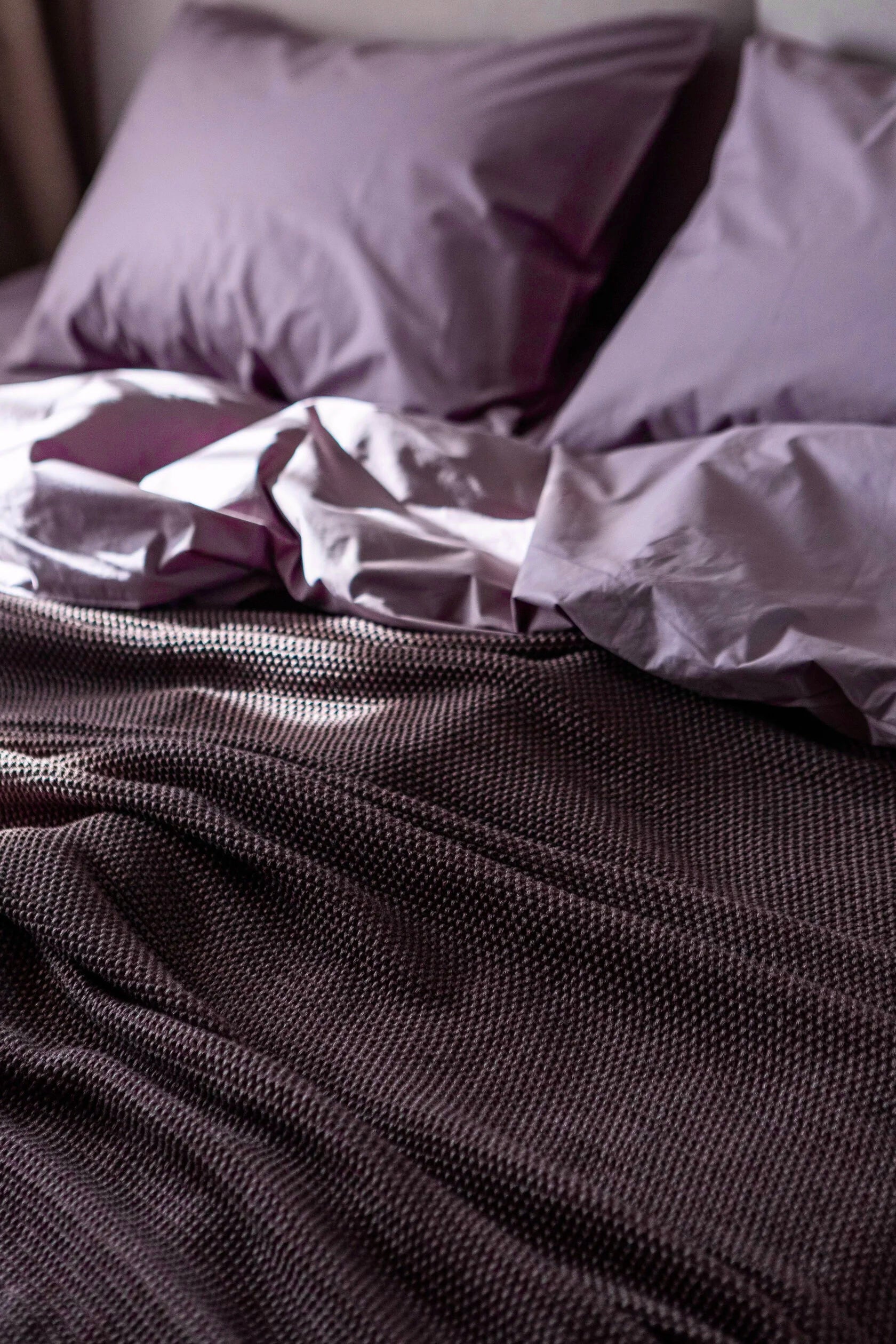 A soft and delicate plain chunky knit plaid-bedspread that will cover the entire surface of any bed or easily "hug" your whole family at once.