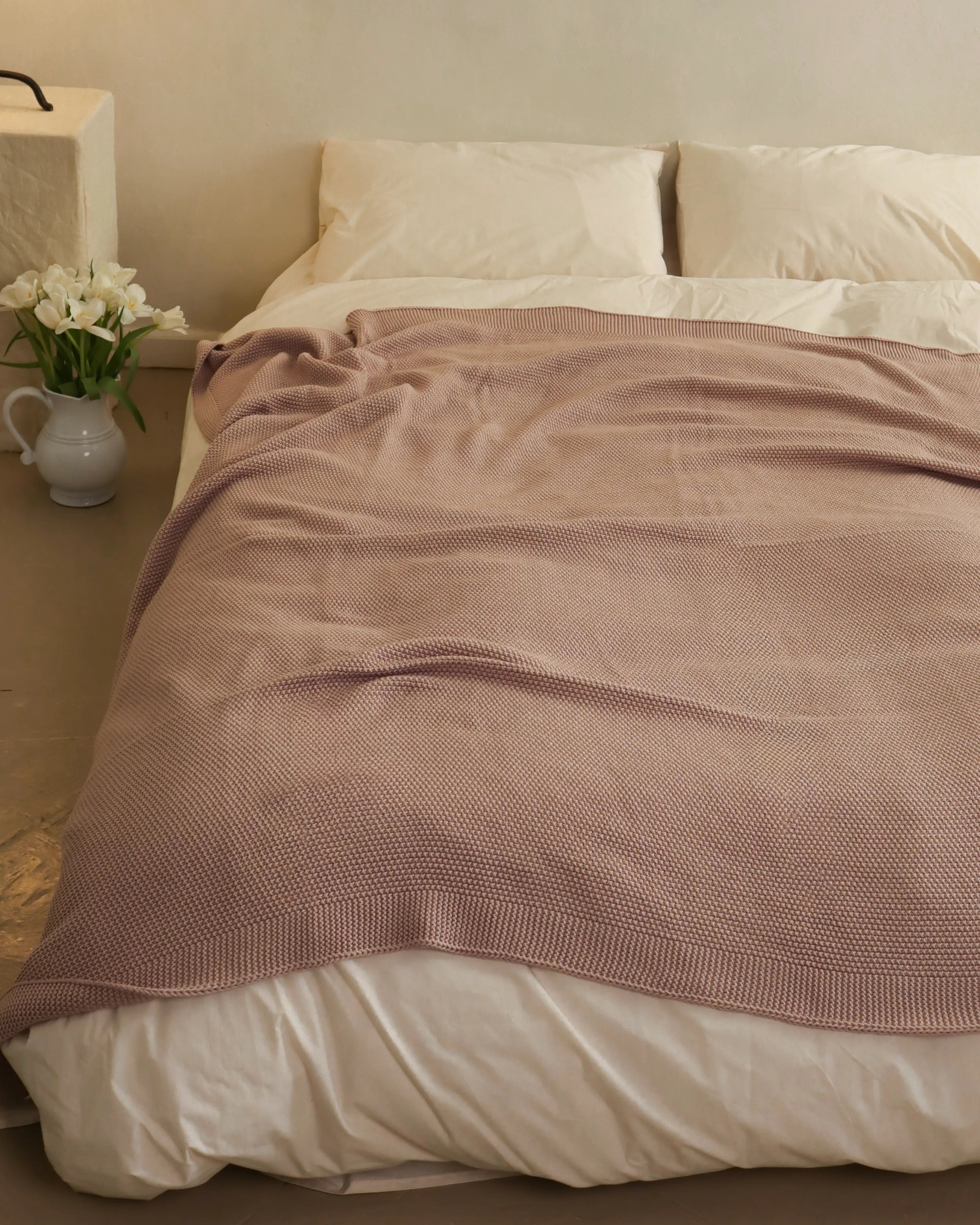 М'який і нижній однотонний плед-покривало грубої в'язки, яка покриває всю поверхню будь-якого ліжка або з легкістю «обійме» всю вашу сім'ю одночасно.