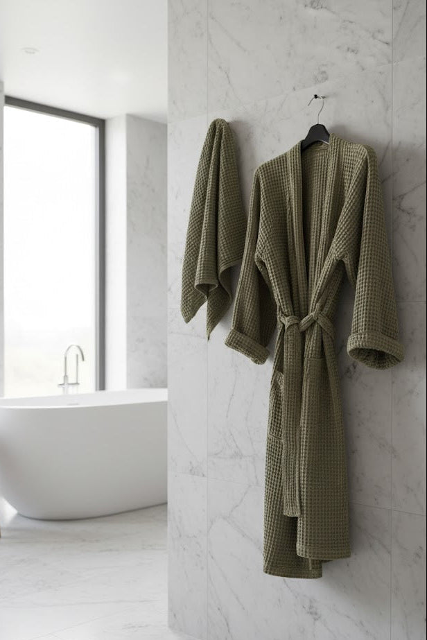 Сет халат із текстурної бавовни та рушник "Оливковий"