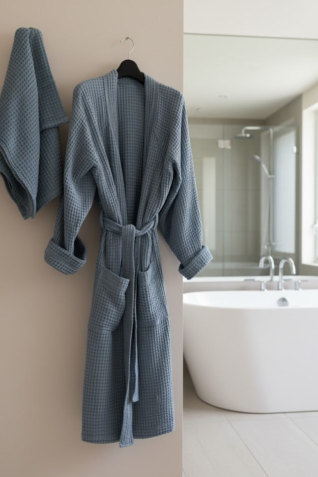 Мінімалістичні текстурні халати в одинадцяти кольорах максимально універсальні і практичні - вони підходять як для чоловіків, так і для жінок. Такий халат можна одягти після ванною або після душу і провести в ньому час перед сном в будинку. Він також забезпечить вам максимальний комфорт після плавання в басейні, після сауни або лазні.