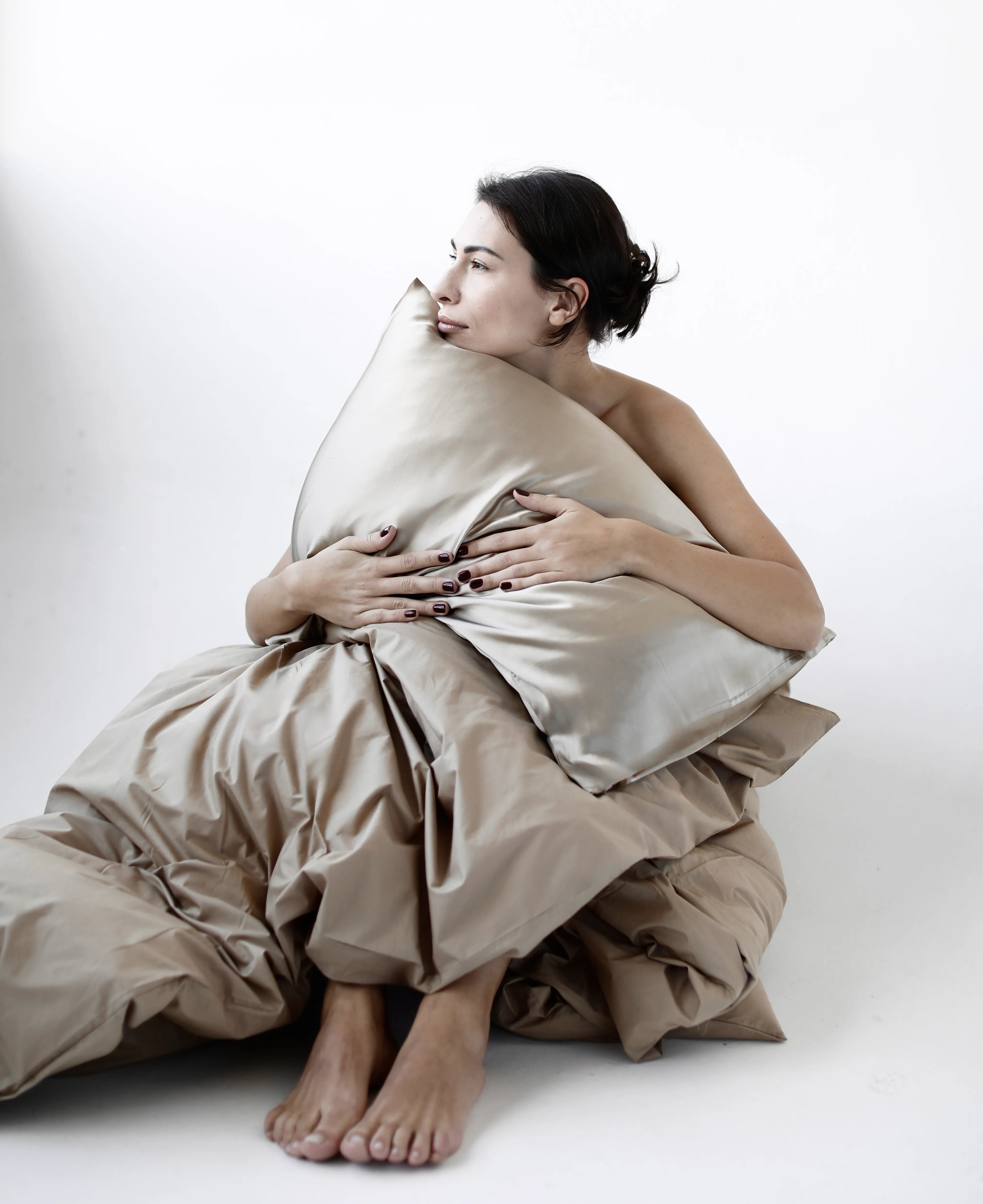 Створена з 100% натурального шовку преміальної якості — м’якого, ніжного й гіпоалергенного. Завдяки своїм природним властивостям даний матеріал практично не створює тертя зі шкірою при дотику. Тому рекомендується спати на наволочках із шовку для збереження прекрасного зовнішнього вигляду - він уповільнює процес появи зморшок, а також добре впливає на волосся. Шовк на 97% складається з органічних білків, тобто за своєю структурою та складом його волокно схоже зі шкірою людини. Він містить у собі амінокислоти, які беруть участь в омолоджуючих процесах організму. За рахунок своєї гігроскопічності шовк запобігає ламкості волосся і сприяють збереженню його блиску, що особливо актуально для хвилястого і кучерявого волосся, так як вони найшвидше втрачають вологу, плутаються і ламаються без правильного догляду.