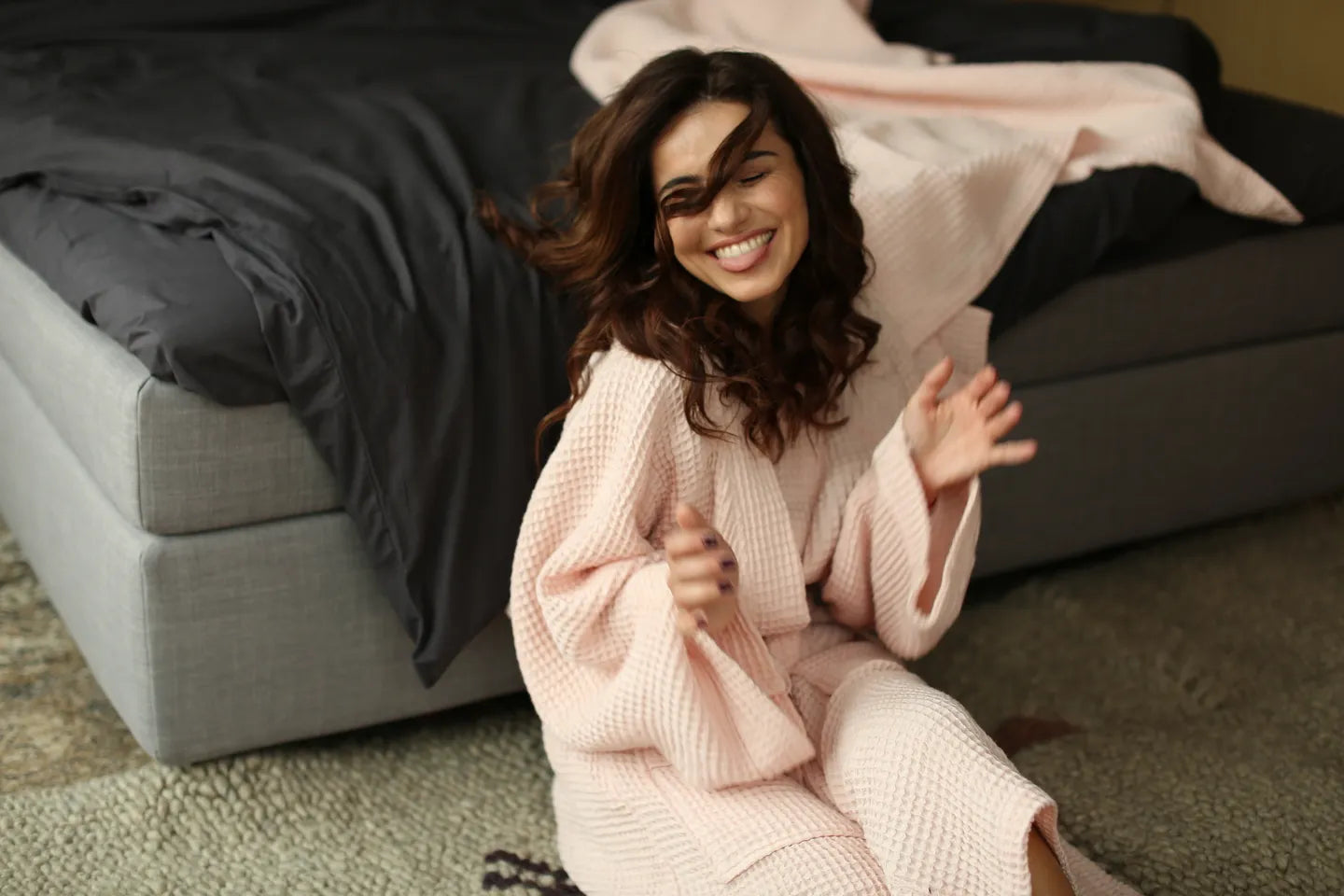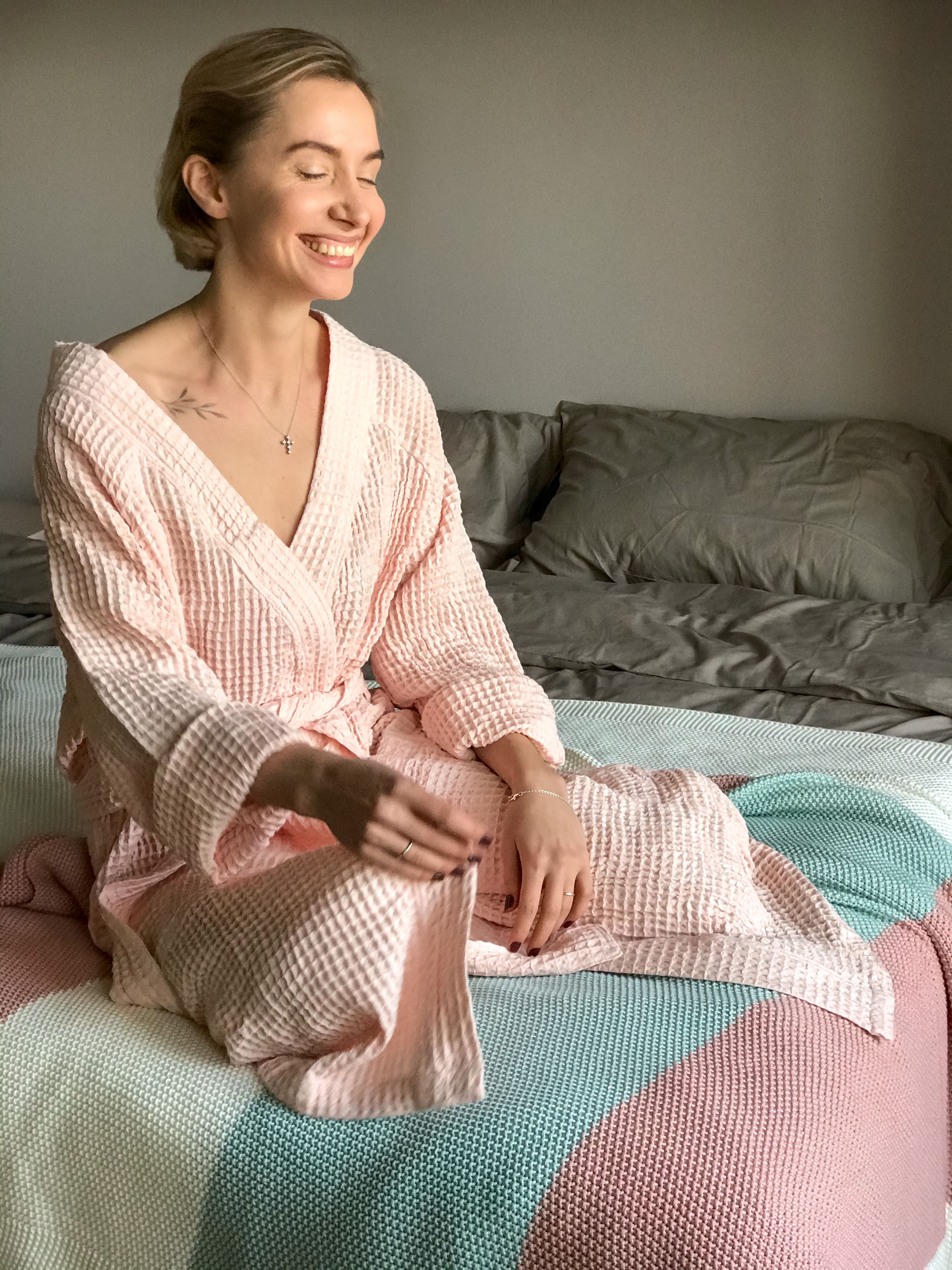 Минималистичные текстурные халаты в пяти цветах максимально универсальны и практичны – они подходят как для мужчин, так и для женщин. Такой халат можно надеть после ванной или после душа и провести в нем время перед сном в доме. Он также обеспечит вам максимальный комфорт после плавания в бассейне, сауны или бани.