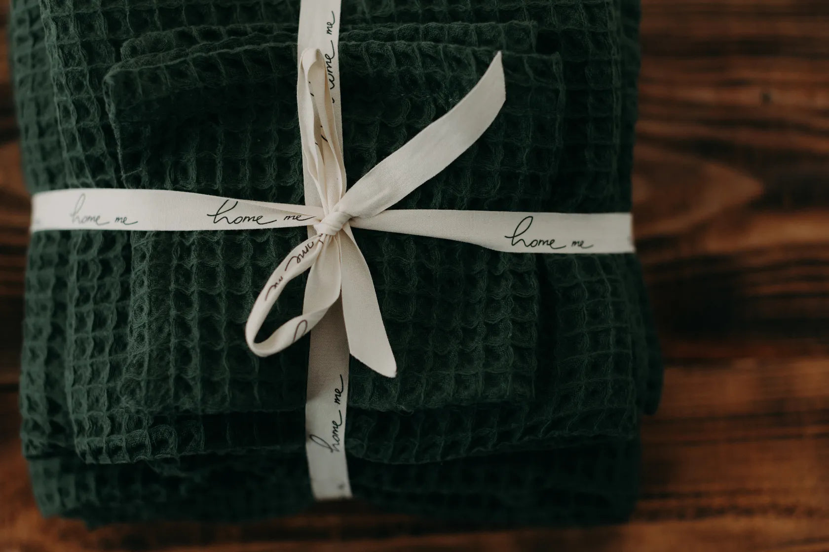 Сет халат из текстурного хлопка и полотенце "Насыщенно зеленый"