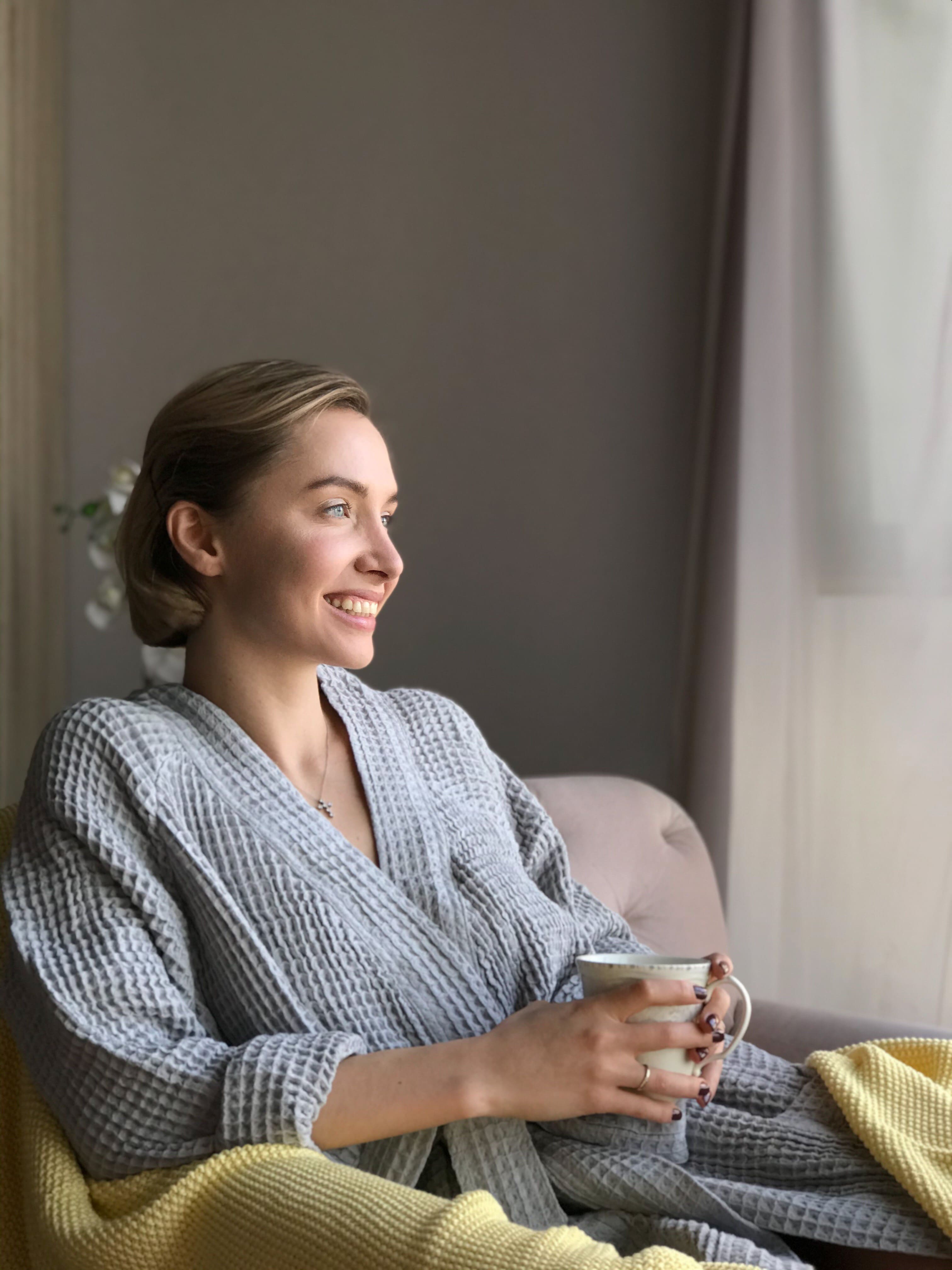 Минималистичные текстурные халаты в пяти цветах максимально универсальны и практичны – они подходят как для мужчин, так и для женщин. Такой халат можно надеть после ванной или после душа и провести в нем время перед сном в доме. Он также обеспечит вам максимальный комфорт после плавания в бассейне, сауны или бани.
