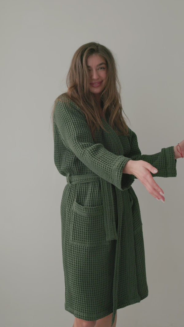 Халат из текстурного хлопка "Насыщенно зеленый"