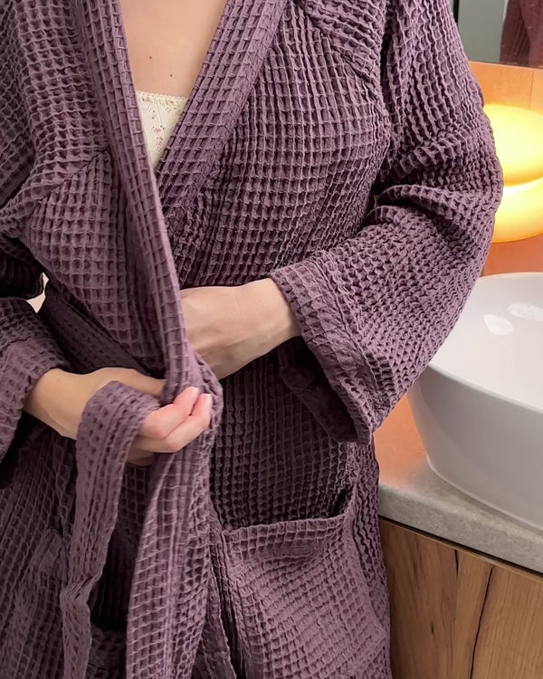 Минималистичные текстурные халаты в пяти цветах максимально универсальны и практичны – они подходят как для мужчин, так и для женщин. Такой халат можно надеть после ванной или после душа и провести в нем время перед сном в доме. Он также обеспечит вам максимальный комфорт после плавания в бассейне, сауны или бани.